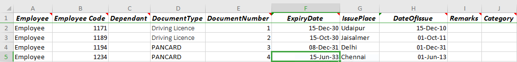 - Select the Documententry. xlsx file containing the details you’ve added, then upload it.