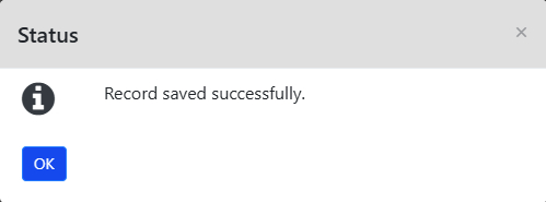 - If all the required fields are filled, you will receive a “Record saved successfully” message.