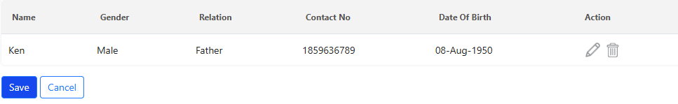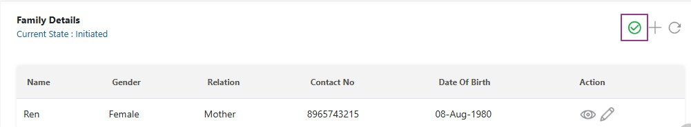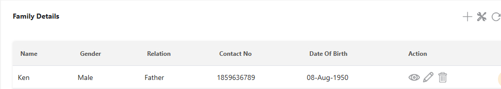 - Click the ‘+’ icon to add family details. A new screen will appear.