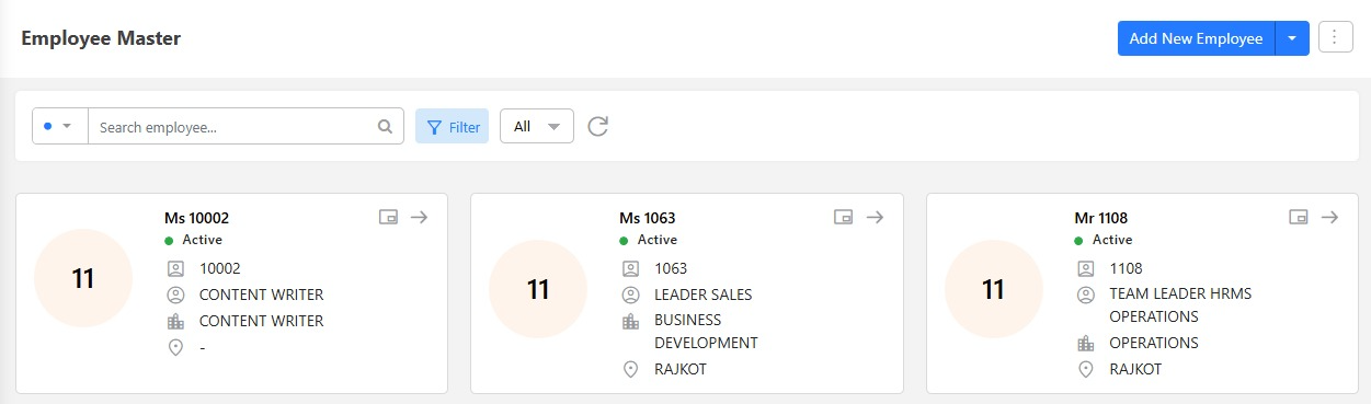 - Click directly on the employee profile, or use the search bar on the Employee Master screen to find a specific employee.