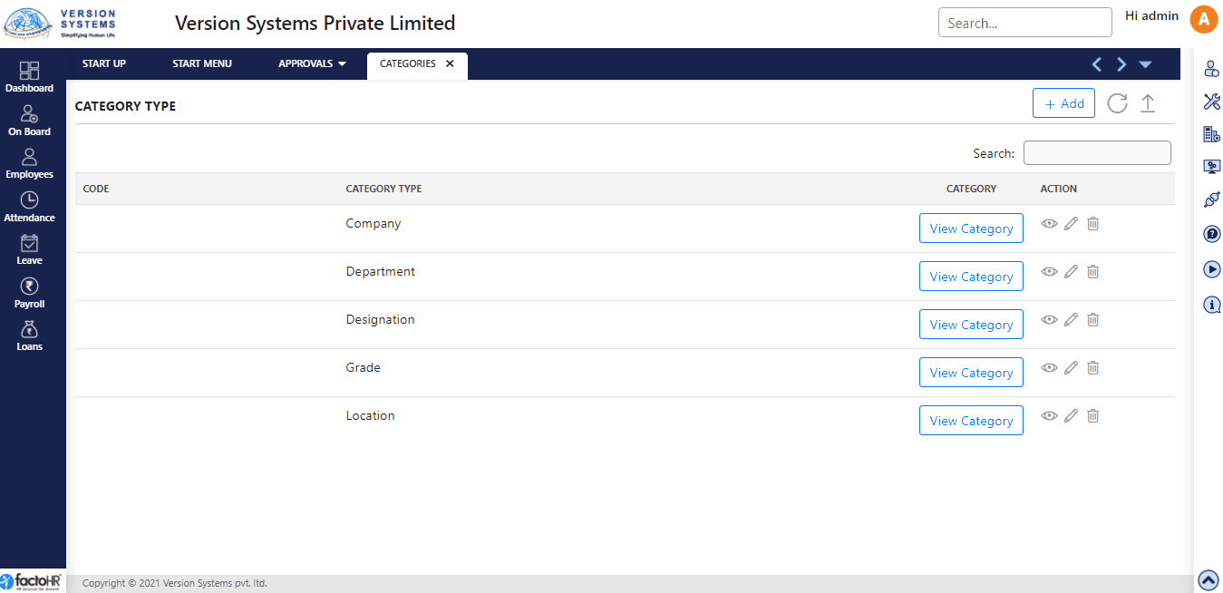 Before adding Employees into the system it is important to Create Category Types and Categories.