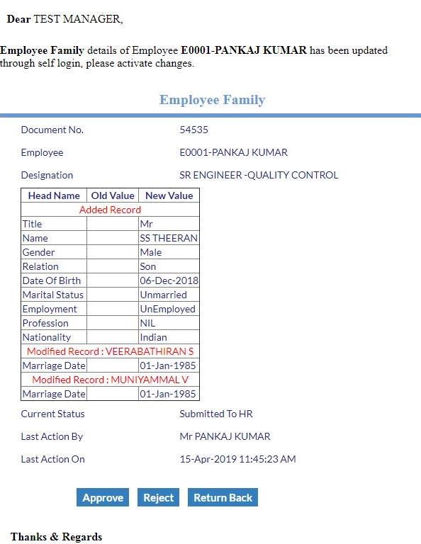 • Once reporting manager approves the information will get saved in the system and can be viewed by employee.