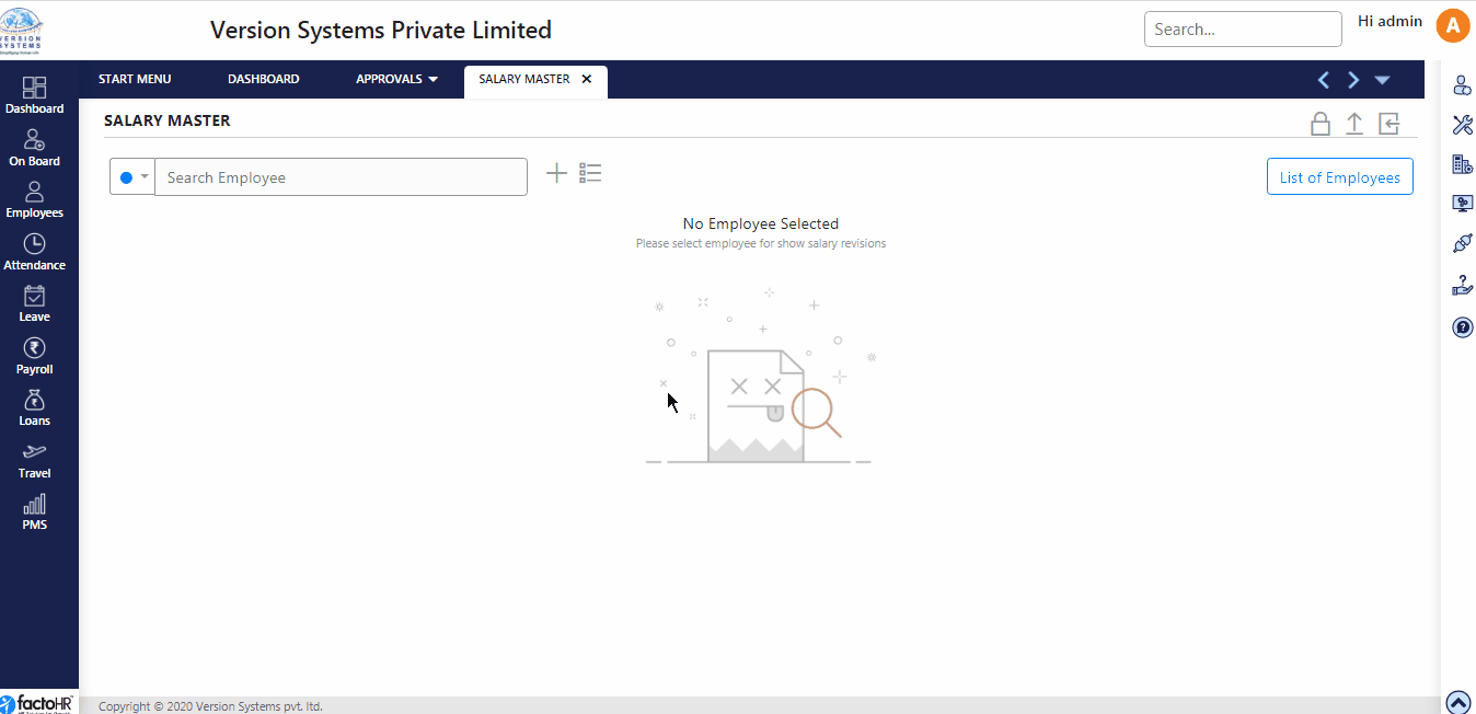 - Search employee name in a search box, on top left of the salary master screen, and select it.